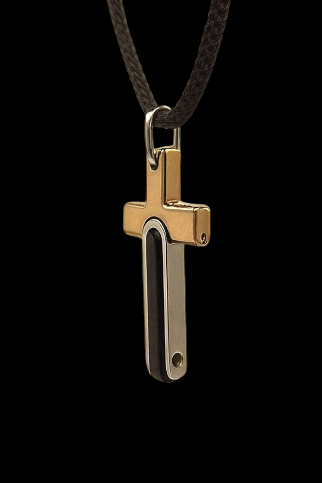 This hotsteel collection cross pendant embodies bold craftsmanship and refined style. Made from 316 marine grade stainless steel, it features a dual-tone design rose-gold plating framing a sleek black stainless steel inlay. The pendant hangs on a durable Japanese cotton cord, blending luxury with everyday wearability. Designed for the modern man, this piece represents strength, faith, and confidence through minimal yet striking detail.