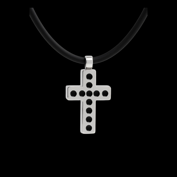 hotsteel Collection pendant is crafted from 316 marine-grade stainless steel and showcases a striking cross design adorned with precision-set black diamond detailing. The sleek steel finish contrasts beautifully against the deep black stones, creating a look of strength and sophistication. It comes with a smooth black rubber necklace, and a German engineered stainless-steel clasp, delivering both comfort and durability. Designed for modern, confident men