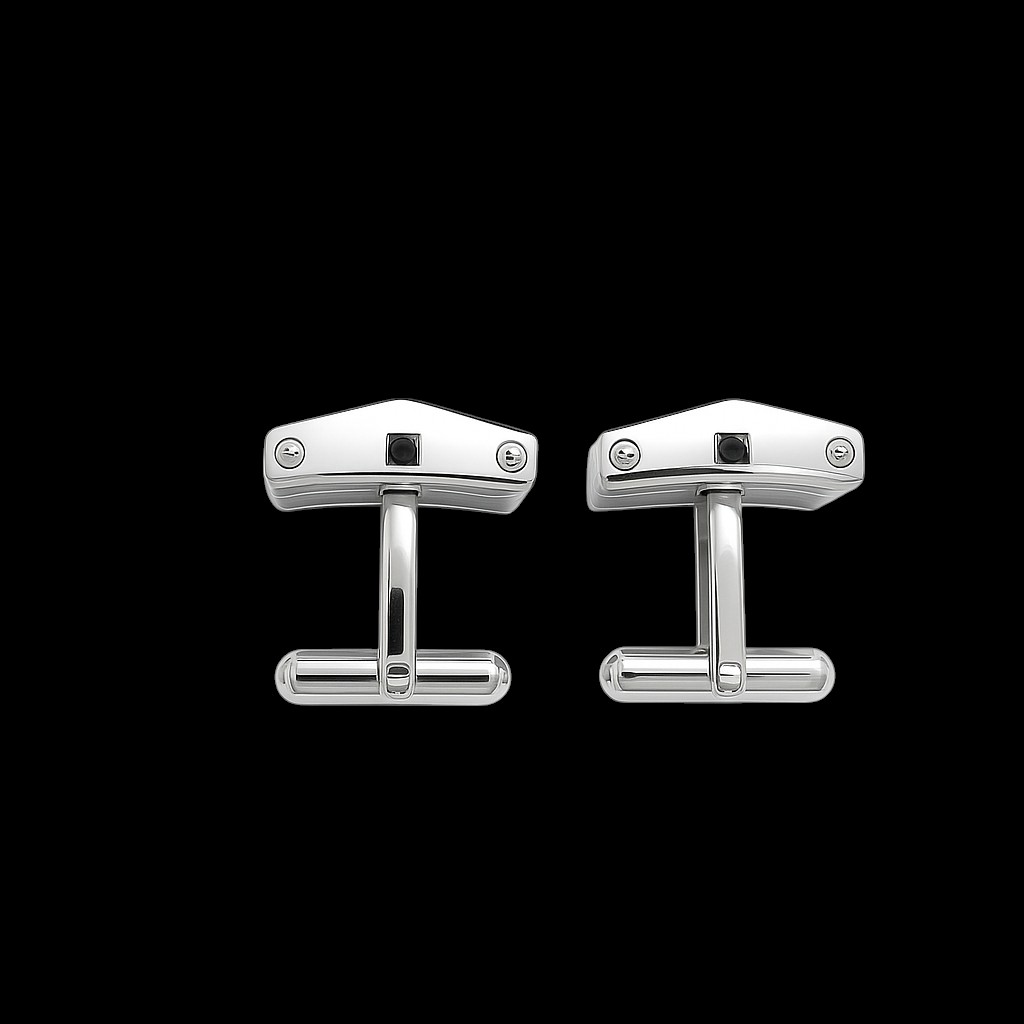 Crafted from premium 316 marine grade stainless steel, these cufflinks combine strength with refined style. The bold, layered design features rich onyx inlays, accented with rose gold detailing for a striking contrast. Each cufflink is finished with a precisely set black diamond, adding a subtle touch of luxury. With their architectural lines and flawless craftsmanship, these cufflinks are perfect for the gentleman who values sophistication, durability, and statement design.