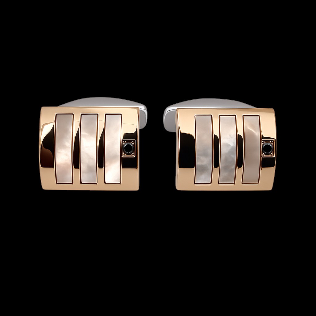 These cufflinks are crafted from premium 316 marine grade stainless steel, combining durability with modern elegance. The polished design features luminous mother of pearl inlays, contrasted with a precisely set black diamond accent, creating a bold yet refined look.