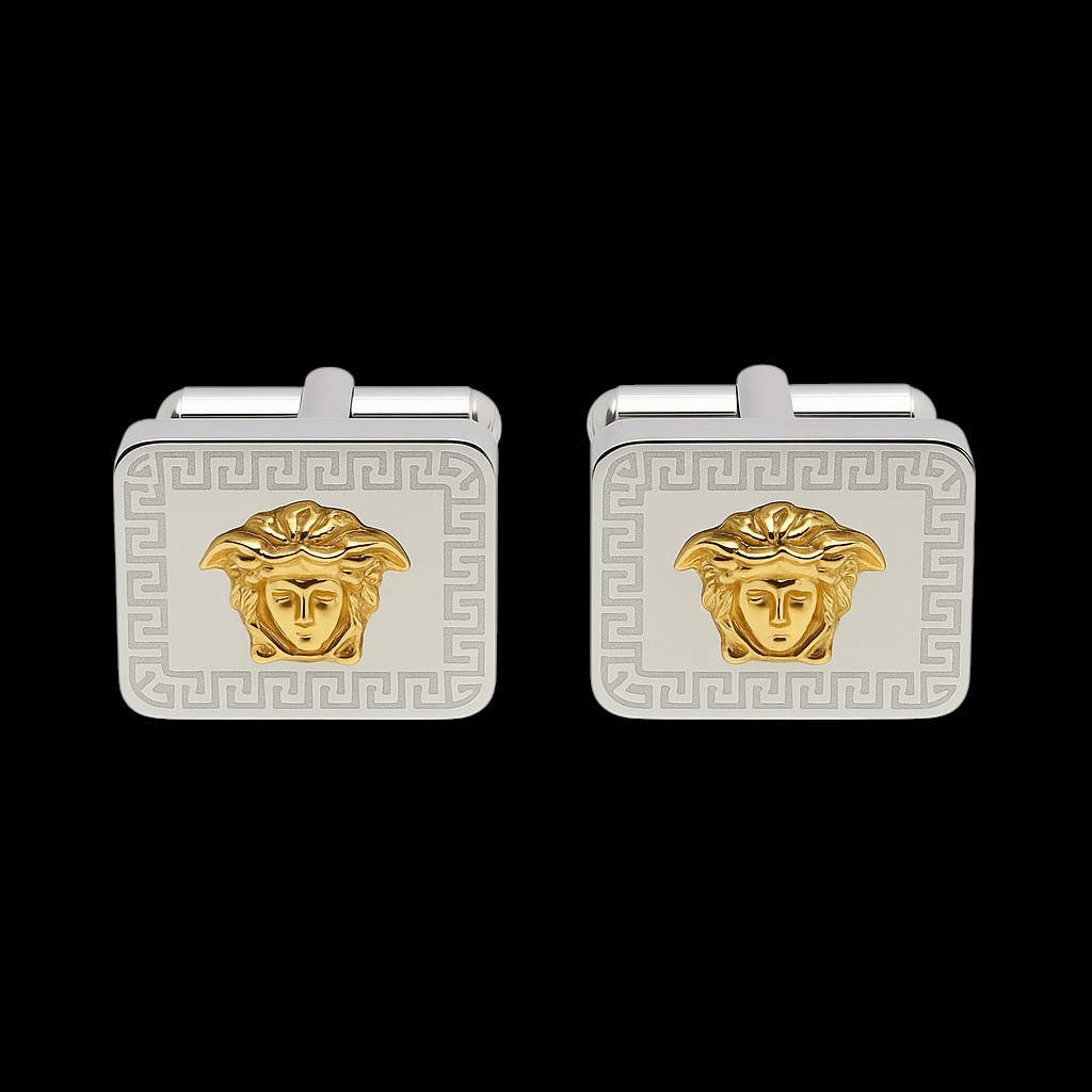 Crafted from 316 marine grade stainless steel, these cufflinks are designed for durability, strength, and lasting brilliance. The centerpiece features a finely detailed Medusa head, finished in radiant gold plating, framed by a classic Greek key border that adds timeless elegance.